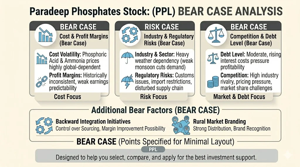 Paradeep Phosphates ek strong fertilizer company aahe ji agriculture sector var dependent aahe. Company ne last kahi varshat strong revenue growth dakhavla aahe ani FY25 madhe profit recovery disli aahe. MCFL merger, capacity expansion ani nano fertilizers sarkhe initiatives future growth la support kartil. Pan margins volatile aahet ani raw material cost risk aahe. Long term investors sathi he stock attractive disu shakto pan short term volatility lakshat thevavi. Proper research ani risk management sobat invest karane yogya rahil.